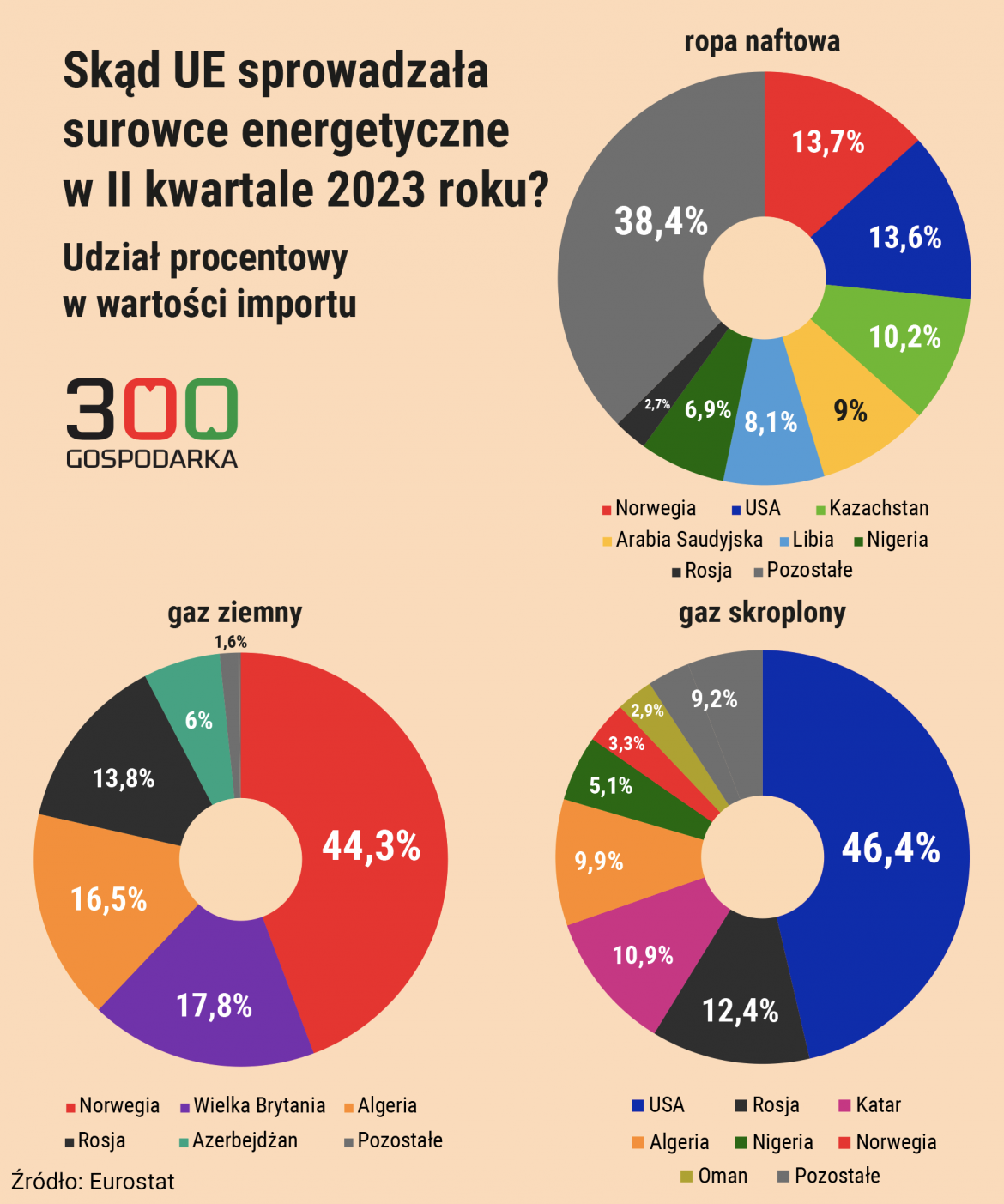 Na podium wśród dostawców do UE są dziś natomiast Norwegia (13,7 proc.), Stany Zjednoczone (13,6 proc.) i Kazachstan (10,2 proc.).