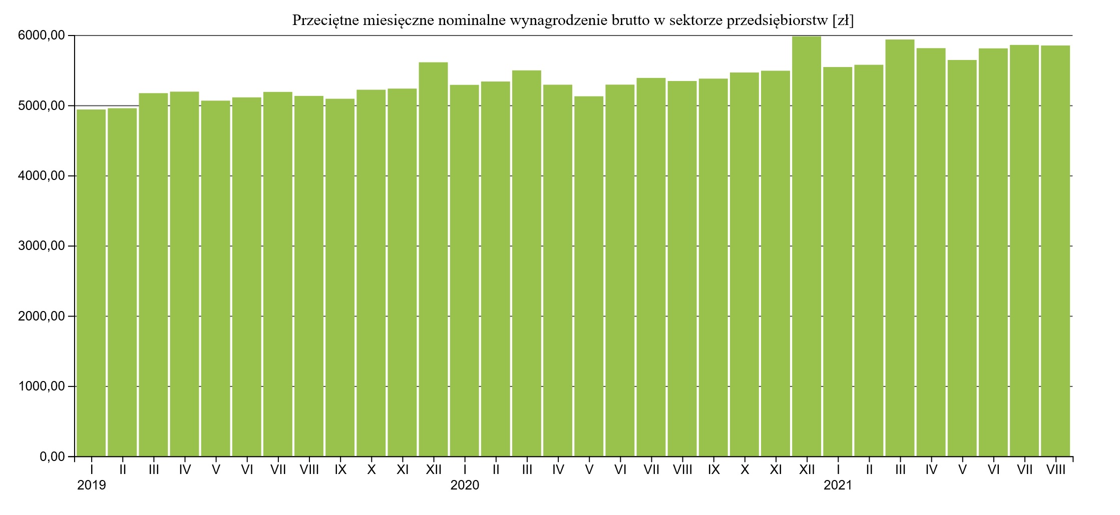 Powody są co najmniej dwa. Pierwszy: budżet nie musi dotować tak mocno Funduszu Ubezpieczeń Społecznych, jak się tego spodziewał rząd. FUS radzi sobie sam, co z kolei wynika z dobrej sytuacji na rynku pracy. To wypadkowa niskiego bezrobocia i dużego wzrostu płac – oba czynniki napędzają FUS-owi wpływy ze składek. Jak kształtowała się średnia krajowa płaca w przedsiębiorstwach pokazuje ten wykres: