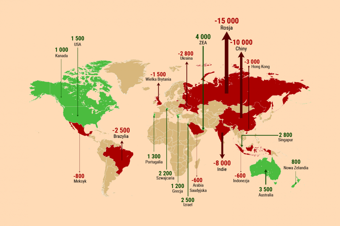 Kierunki migracji najbogatszych ludzi świata na bieżąco bada firma Henley & Partners. To przedsiębiorstwo, które zajmuje się m. in. obsługą administracyjną procesu emigracji i uzyskiwania obywatelstwa, często w trybie „pieniądze za paszport”.