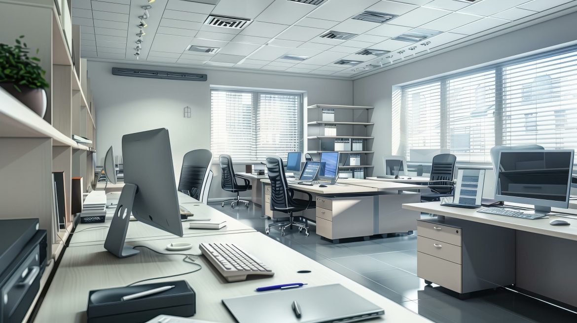 stock photography of Modern office equipment in the office interior –ar 2:1 –v 6 Job ID: aeb3d2e2-8652-4779-a820-683cffc507a7