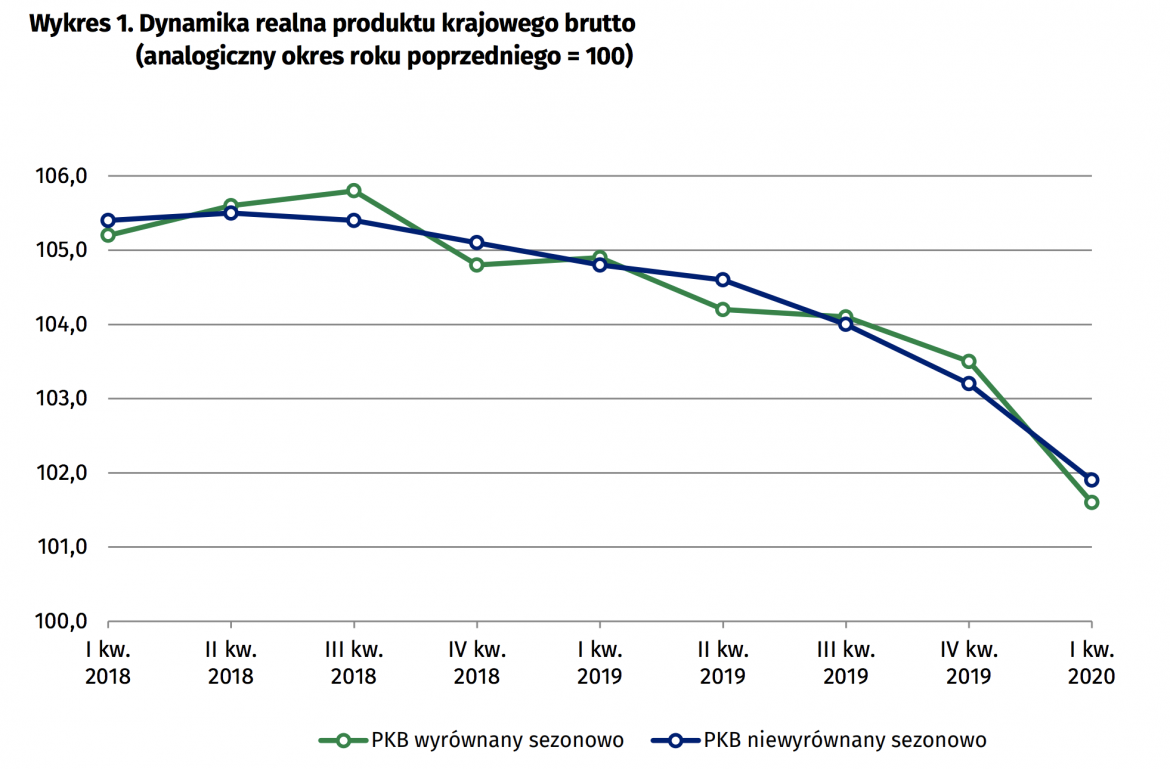 Dynamika wzrostu polskiego PKB w pierwszym kwartale 2020 roku spowolniła do 1,9 proc. w ujęciu rocznym – poinformował we wstępnym odczycie Główny Urząd Statystyczny.