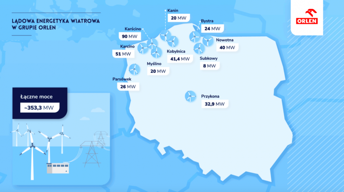 Po planowanej na kwiecień finalizacji transakcji Orlen będzie posiadał w Polsce 353 MW mocy zainstalowanych w energetyce wiatrowej, stając się czwartym co do wielkości graczem na tym rynku.