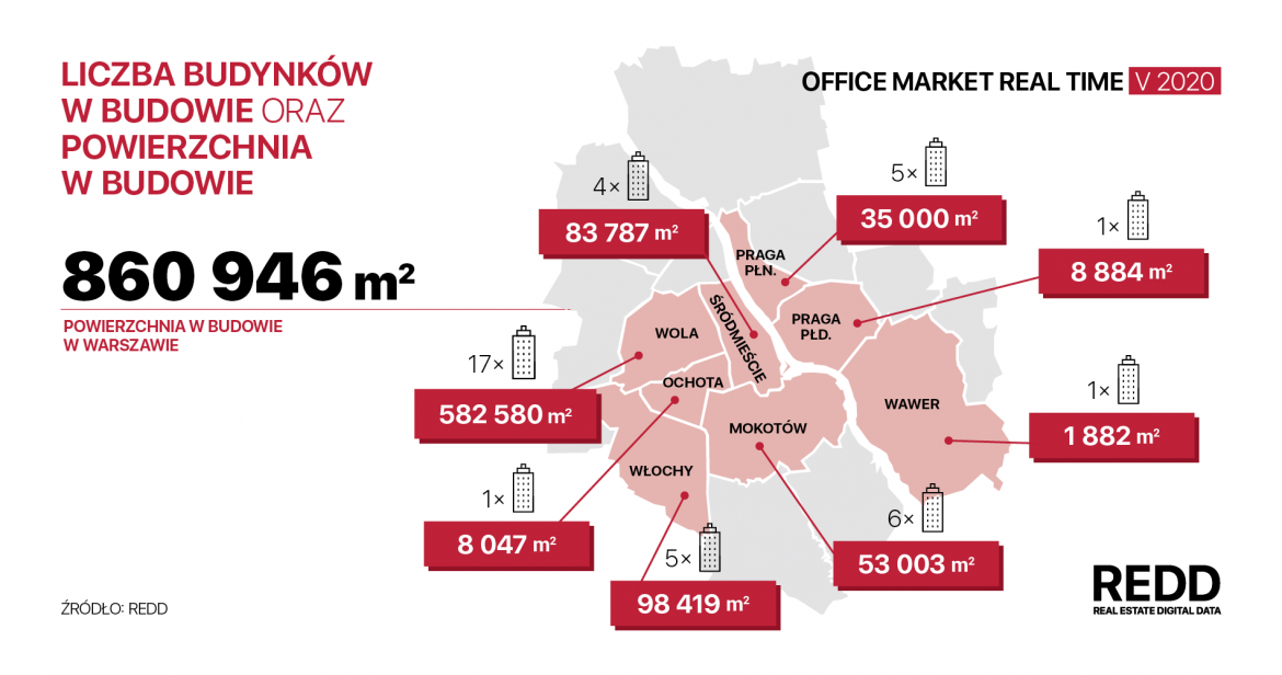 „Odsetek powierzchni niewynajętych w biurowcach na Woli to jedynie 8 proc., a dla całej Warszawy – 9.51 proc. Na Mokowie z kolei (wlicza się Służewiec) współczynnik niewynajętej powierzchni w budynkach oddanych wynosi już prawie 14 proc.” – mówi Judyta Bartnicka, Big Data Analyst, REDD.
