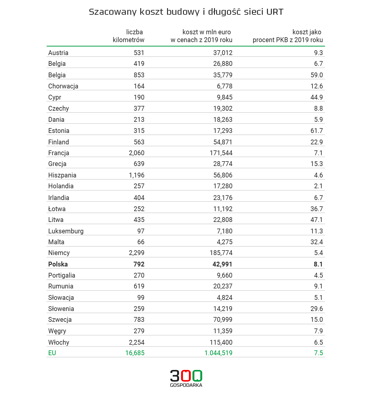 Warto jednak podkreślić, że środki z tego programu wystarczyłyby jedynie na sfinansowanie nieco ponad połowy całej sieci URT (o wartości 550 mld euro).