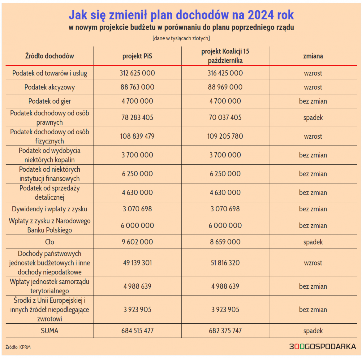 Tegoroczne tempo prac nad budżetem jest więc ekspresowe. Siłą rzeczy ogranicza to pole do dużych zmian w porównaniu do dokumentu, jakie nowemu rządowi zostawili poprzednicy. Ale kilka istotnych zmian wprowadzono, na tyle dużych, że zmieniły się podstawowe wielkości budżetu, czyli dochody, wydatki i deficyt.