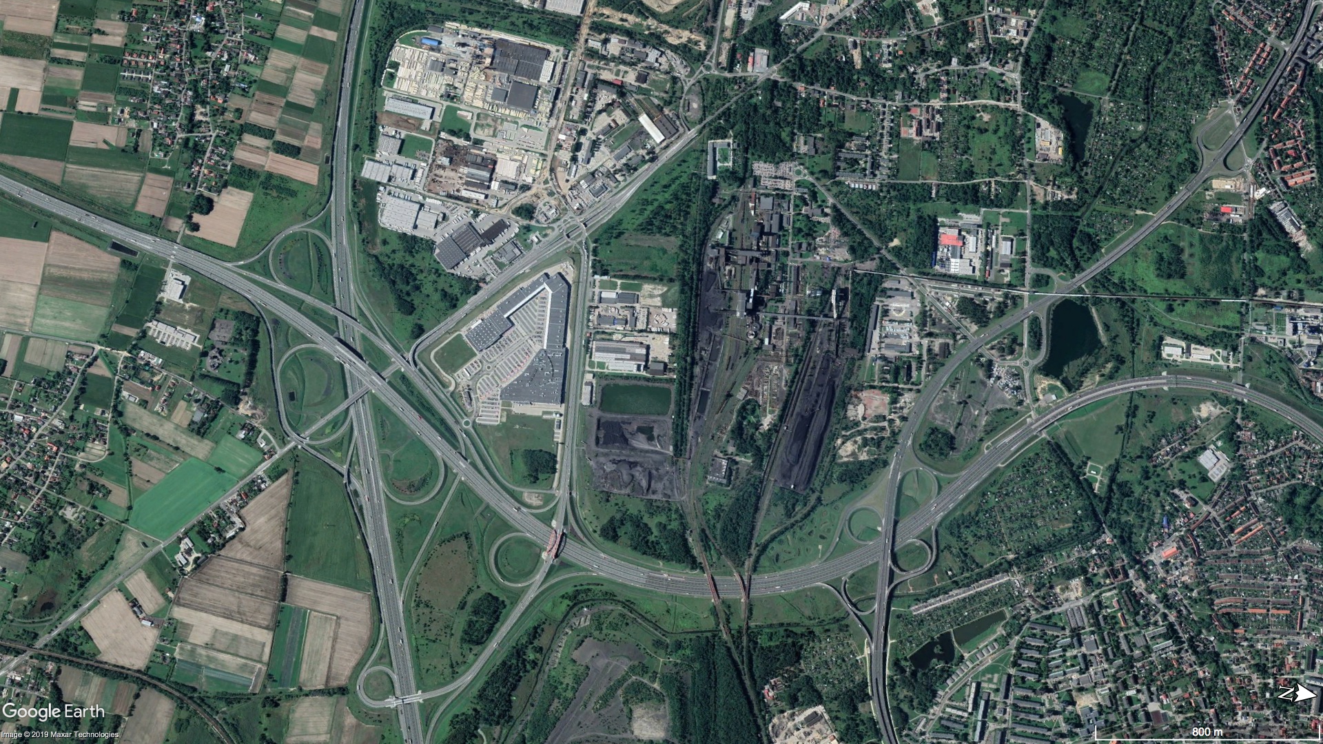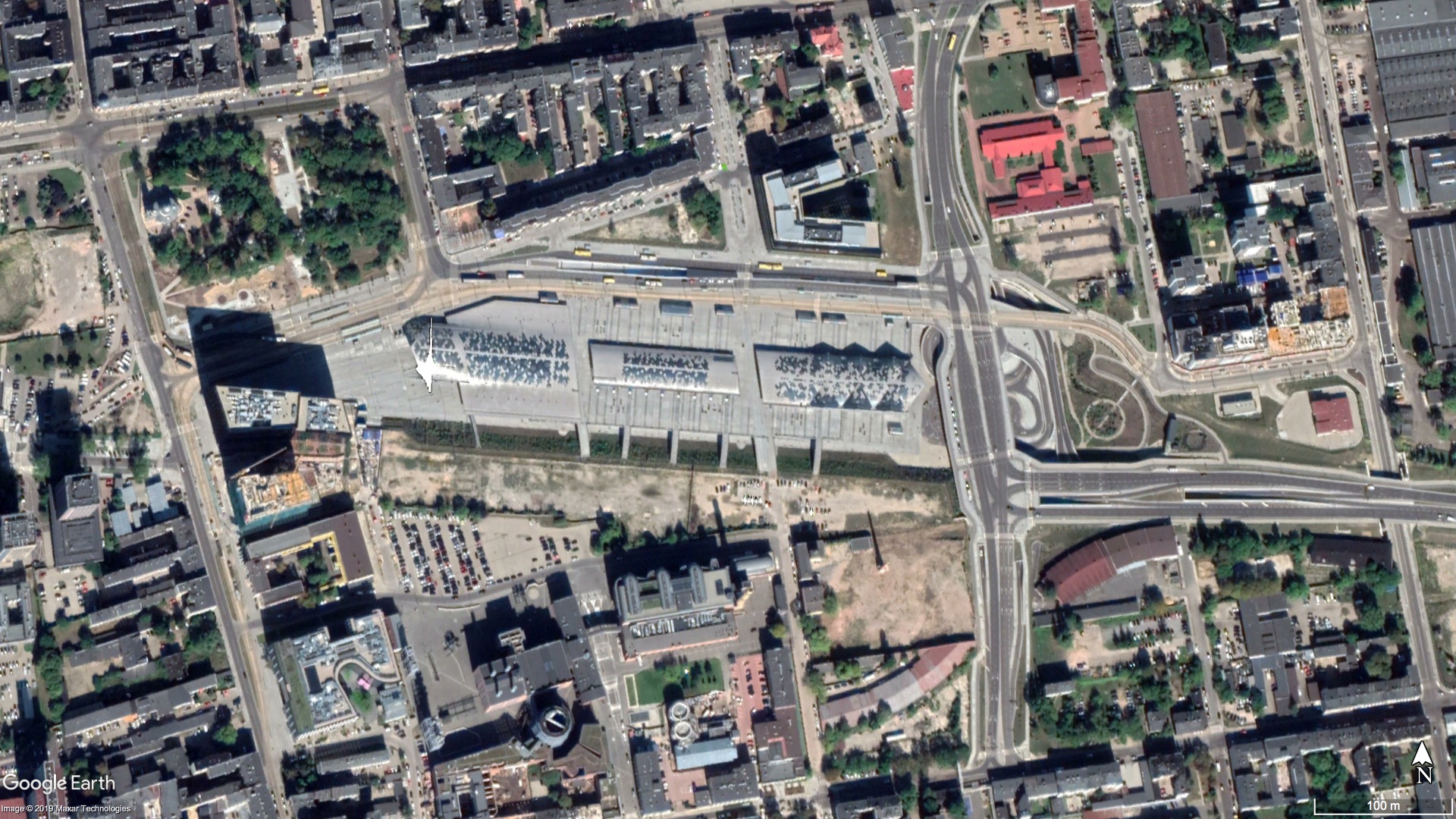 Poniższe zdjęcia satelitarne pokazują Łódź Fabryczną w 2009 i w 2019 roku.