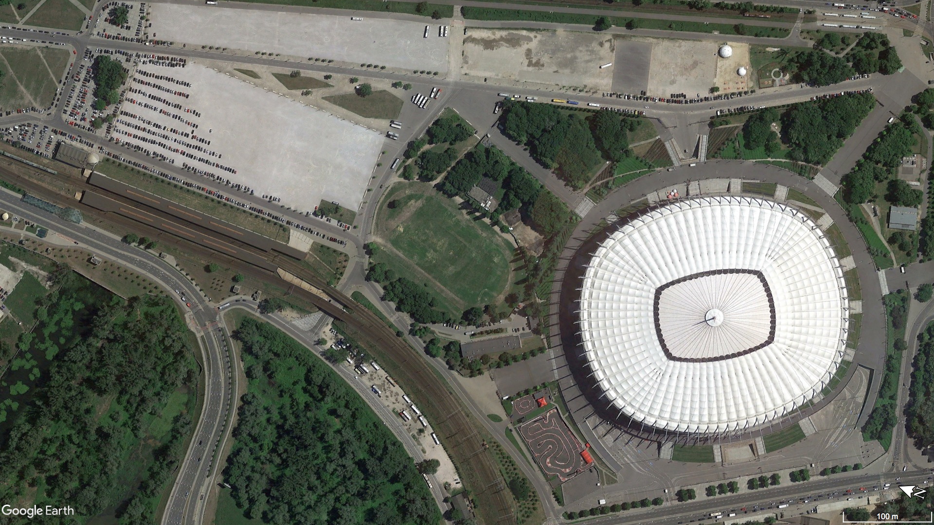 Poniższa interaktywna grafika pokazuje stadion i okolice w 2002 oraz w 2019 roku.